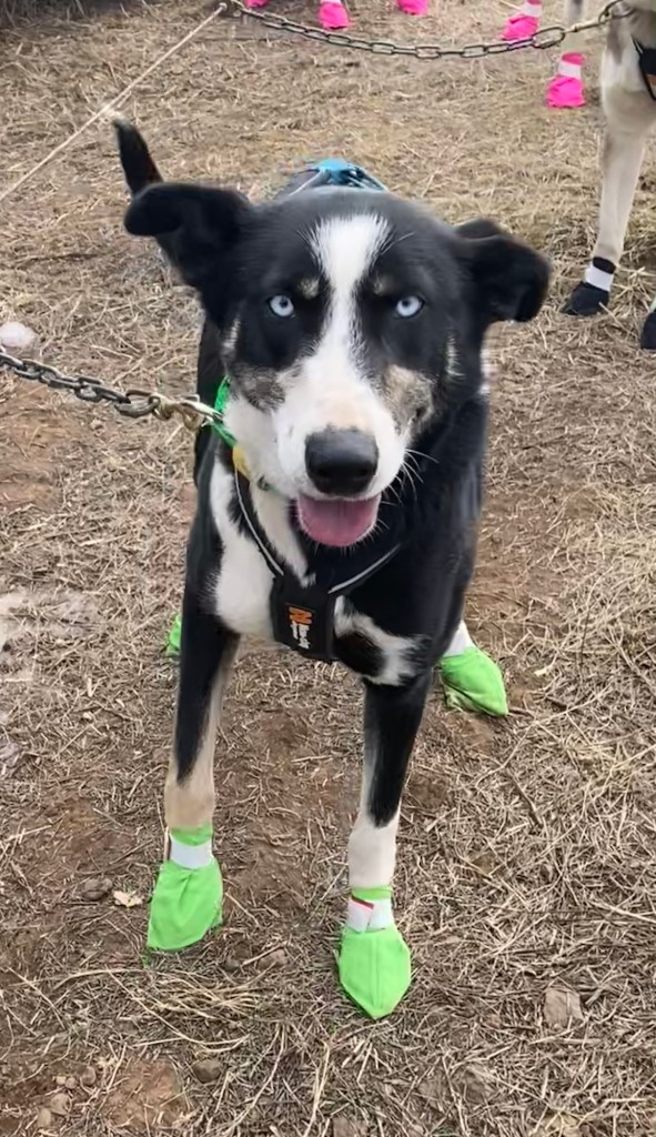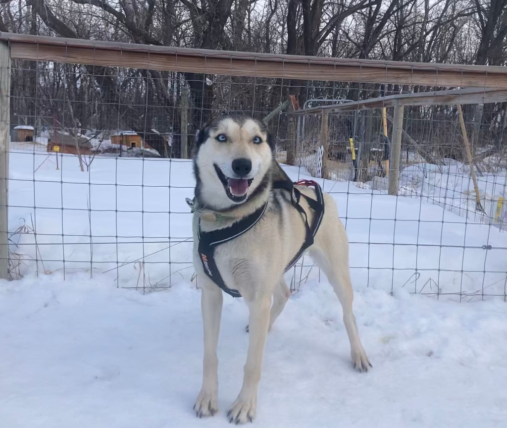 This goofy guy came to us the spring of 2023. He has ran several long distance races before he came to us. He is a wheel dog but don’t be surprised to see him in lead with Skruff. He’s not the most focused up there but he can do it! He is very mouthy but he’s definitely a worker!